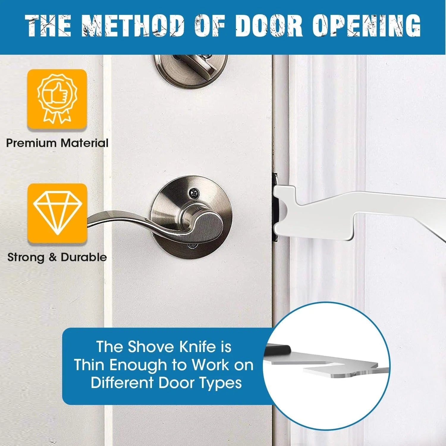 The Door Jim Pry Bar is a non-destructive entry tool designed to assist with opening doors equipped with spring latch mechanisms. It is commonly used by locksmiths, emergency responders, and security professionals to bypass simple latch systems without damaging door hardware.