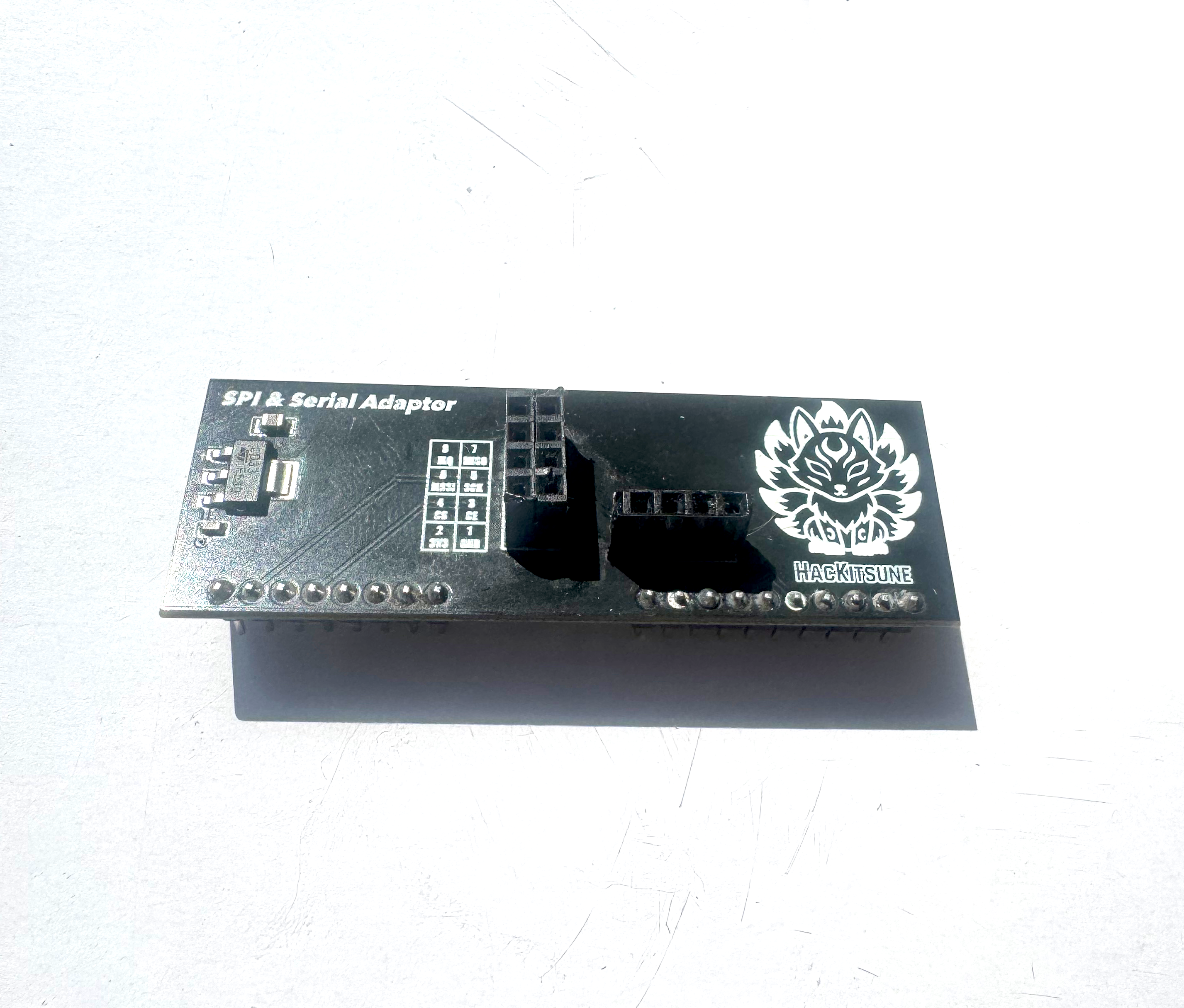 The Hackitsune SPI and Serial Adapter Module is engineered to extend the functionality of your Flipper Zero while protecting its most critical component: the SD card. By leveraging the Flipper’s dedicated 5V GPIO rail (enabled via GPIO settings), this module provides a clean, stable power supply and GPIO connectivity to external SPI and Serial peripherals without loading the 3.3V rail that services the SD card.
